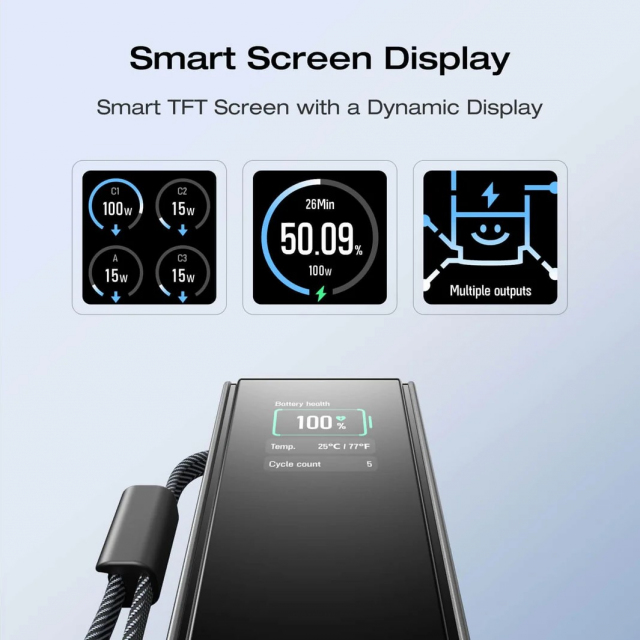 EcoFlow Rapid 25K Power Bank, 25.000mAh (90,00 Wh) Air-travel-friendly, 140W single port output, 170W total output, 2 Type-C ports: 140W, 1 USB-A port: 33W, TFT Display, 157x54x58mm, 580g, 1 m drop resistant, Black