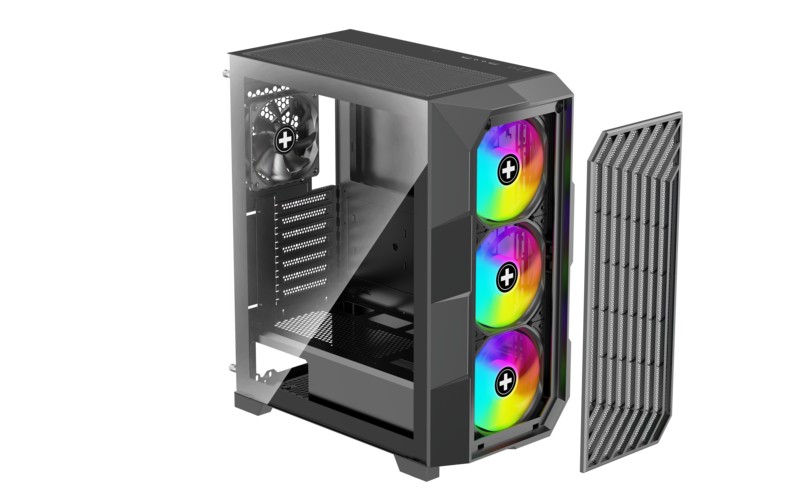 XILENCE ”X812.RGB” Xilent Breeze II ATX Case, without PSU, with Tempered Glass Side Panel, Wave front panel with mesh, Front: 3x ARGB 120mm PWM fans, Rear: 1x120mm PWM Black, w/Control Board (ARGB/PWM), HDD Tool-free caddy, 2x 3.5”/ 2x 2.5”, 2x USB 3.0, 1x Mic, 1xHeadphones, LED, PSU Shroud, Black