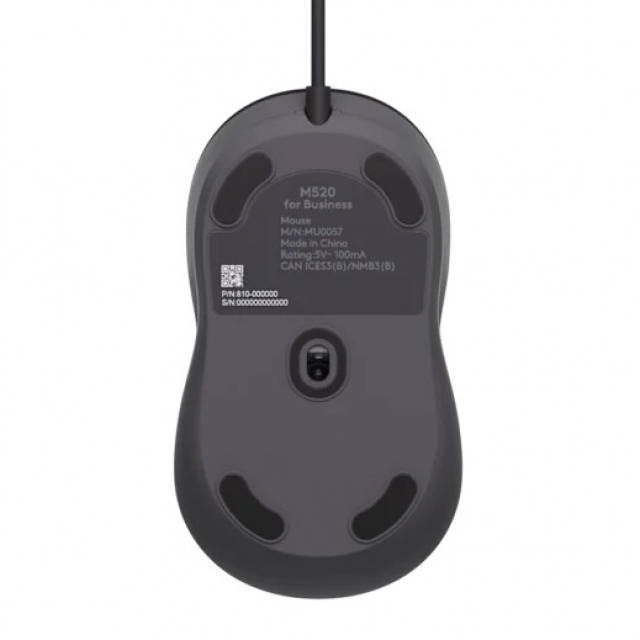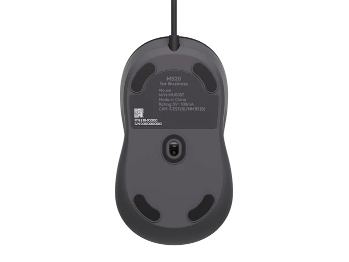 LOGITECH Signature M520 Corded Mouse for Business, 400-4000 DPI, Silent Touch, 4 buttons, Corded, USB-C, GRAPHITE