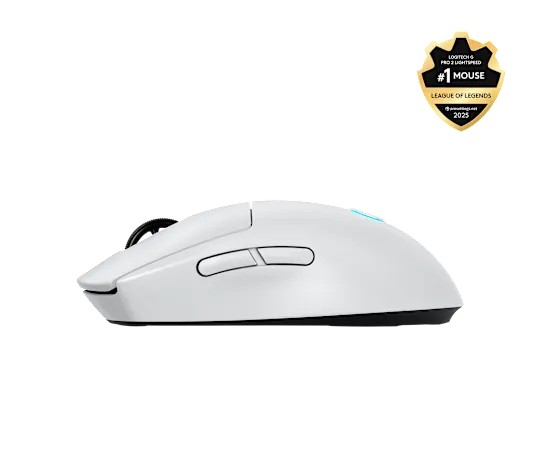 Logitech Gaming G PRO 2 LIGHTSPEED Ambidextrous Wireless Mouse, HERO 2, 5 buttons, Resolution 100 – 44,000 dpi, Max. speed: >888 ips, Onboard memory, BATTERY LIFE 95h, WHITE - 2.4GHZ