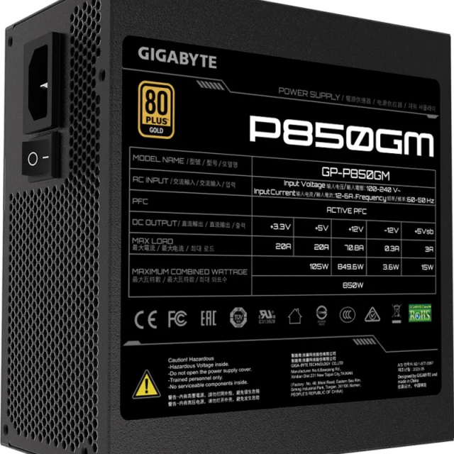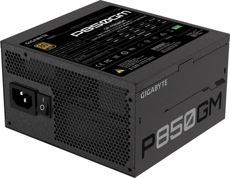 PSU GIGABYTE ”GP-P850GM”, 850W, ATX12V V2.31, 80 PLUS® Gold, Fully Modular, Active PFC, Main Japan Cap, 120mm HYB Fan with PWM, +12V (70.8A), 20+4 Pin, 2xCPU(4+4Pin), 8x SATA, 4xPCI-E(6+2pin), 3x Peripheral, OVP/OPP/SCP/UVP/OCP/OTP, Black