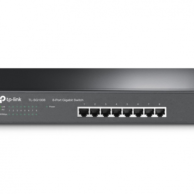 TP-LINK TL-SG1008, 8-port Gigabit Switch, 8 10/100/1000M RJ45 ports, 1U 13-inch rack-mountable steel case