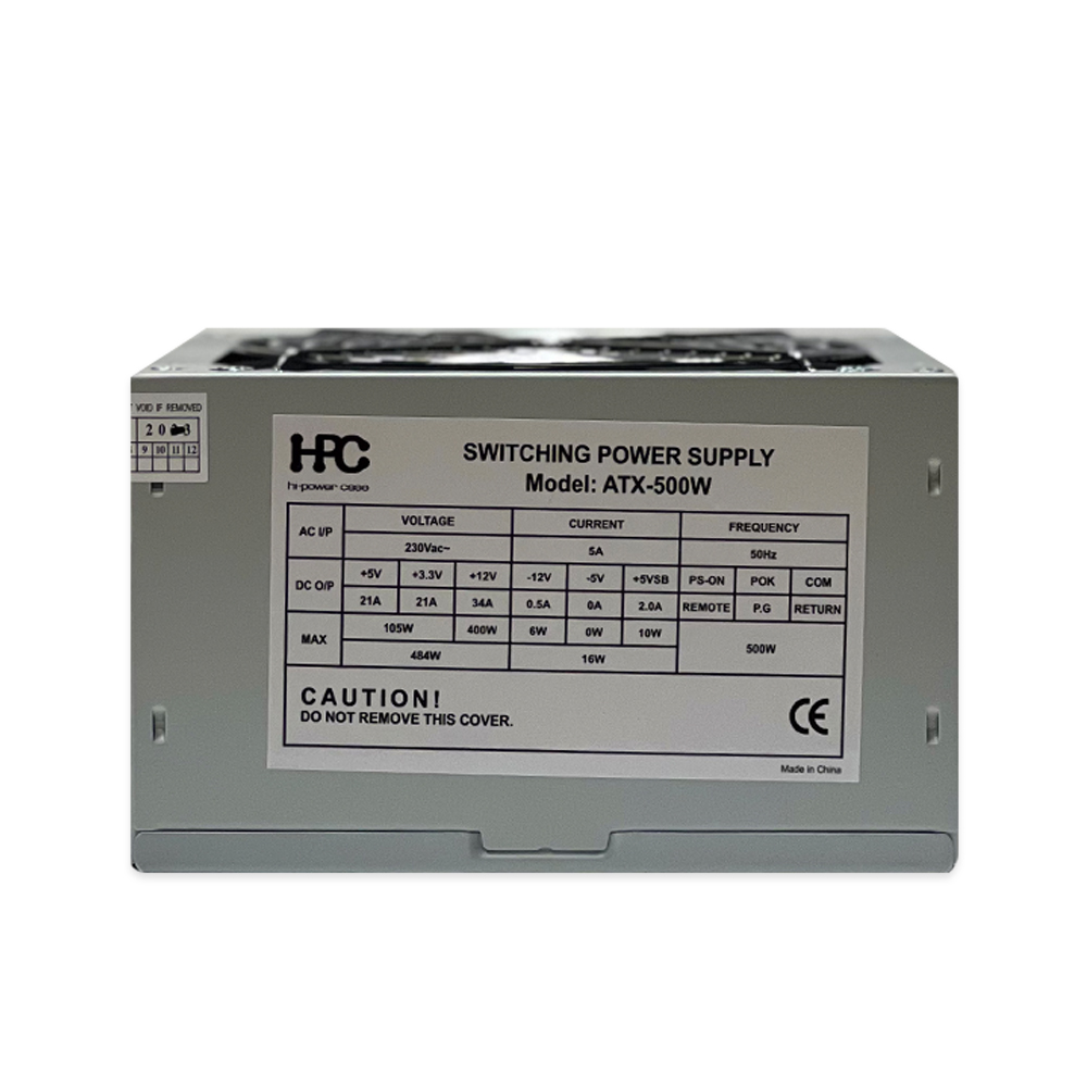 PSU HPC ATX-500W, 12cm Black fan, 24 pin, 1x 4-pin, 2x SATA, 2x IDE, 1x FDD, 1.2m EU-plug cable, Silver