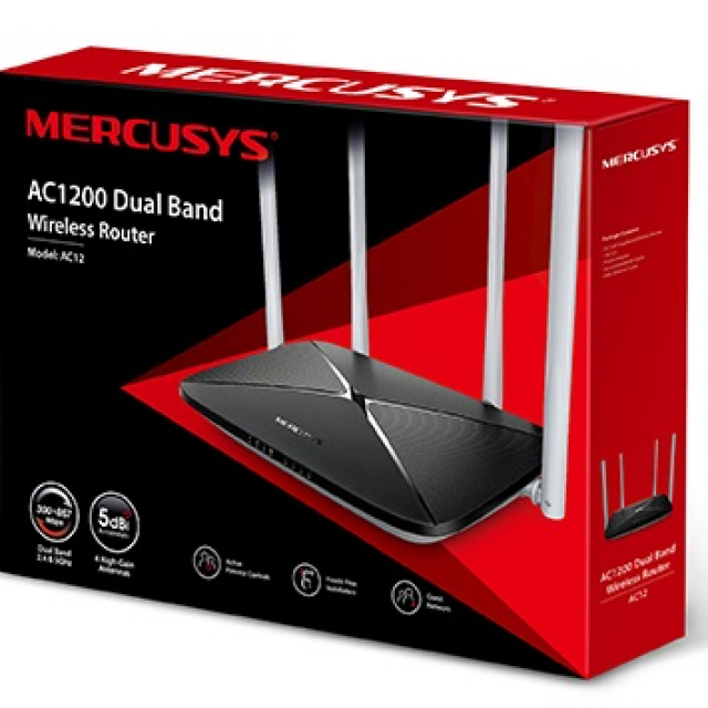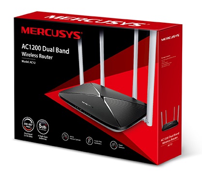 MERCUSYS AC12 AC1200 Dual Band Wireless Router, 867Mbps at 5Ghz + 300Mbps at 2.4Ghz, 802.11ac/a/b/g/n, 1 WAN + 4 LAN, 4 external antennas