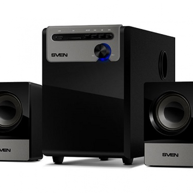 SVEN MS-110 Black, 2.1 / 5W+2x2.5W RMS, USB Flash, SD card, sub. wooden, (sub.4.0” + satl.2.4”)