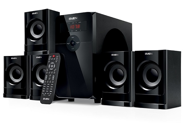 SVEN HT-201 Black, 5.1 / 20W + 5x12W RMS, Bluetooth+EDR, FM-tuner, USB & SD card Input, Digital LED display, built-in clock, remote control, all wooden (sub.5.3” + satl.3.2”)