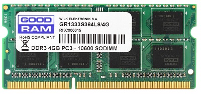 4GB DDR3L-1600 SODIMM GOODRAM, PC12800, CL11, 1.35V