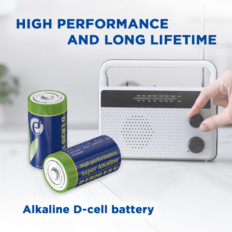 Gembird Alcaline Battery D-cell LR20 1.5V, 2pcs, High performance and long lifetime