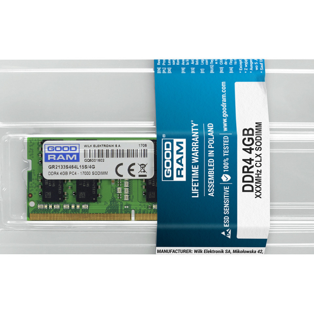 8GB DDR4-2666 SODIMM GOODRAM, PC21300, CL19, Single Rank, 1024x8, 1.2V