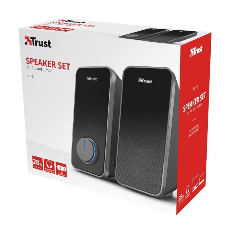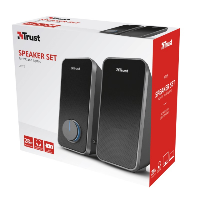 Trust Arys 2.0 Speaker Set, 28W, USB-powered, Black