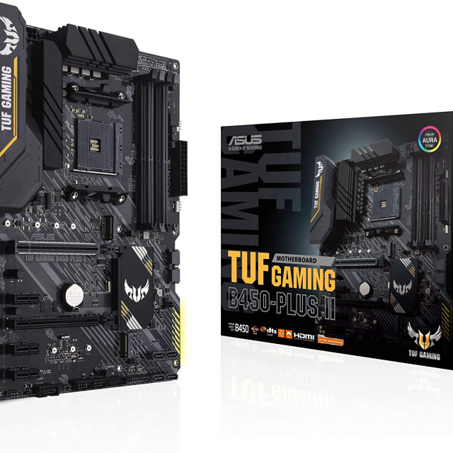 ASUS TUF GAMING B450-PLUS II, Socket AM4, AMD B450, Dual 4xDDR4-4400, APU AMD graphics, HDMI, DP, 2xPCIe X16, 6xSATA3, RAID, 2xM.2, 3xPCIeX1, ALC S1200A HDA, GbE LAN, 2xUSB3.2 Gen2(Type A+C), 6xUSB3.2, Aura Sync RGB, TUF comp, ATX