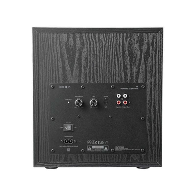 Edifier T5 Powered Subwoofer Black, 70W, 8-inch (220mm) Bass Driver, 38Hz-160Hz, integrated DSP, RCA in/out, Volume, low pass filter and phase control, MDF, 278x300x336 mm, 8.56kg