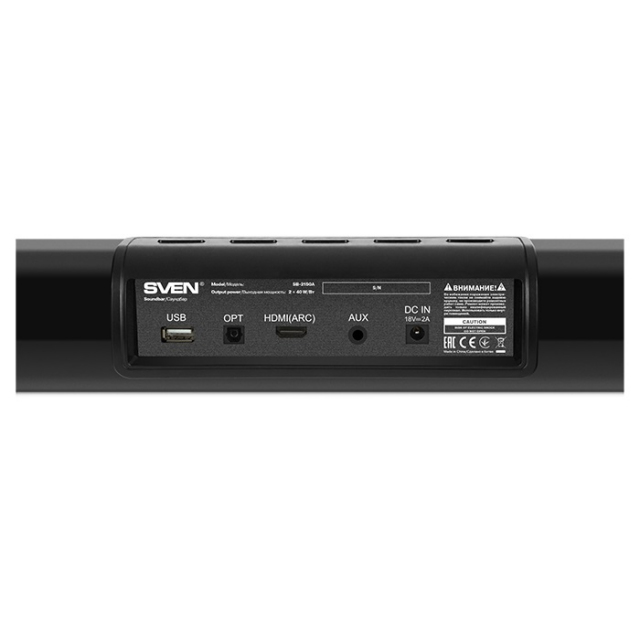 SVEN Soundbar SB-2150A, black (180 W, USB, display, RC, Optical, Bluetooth, wireless subwoofer)