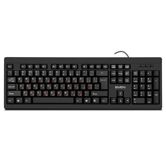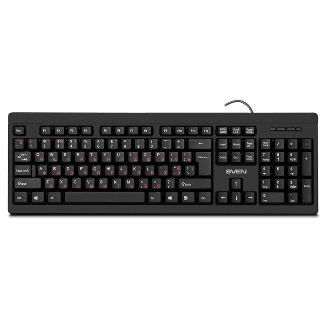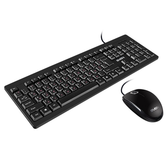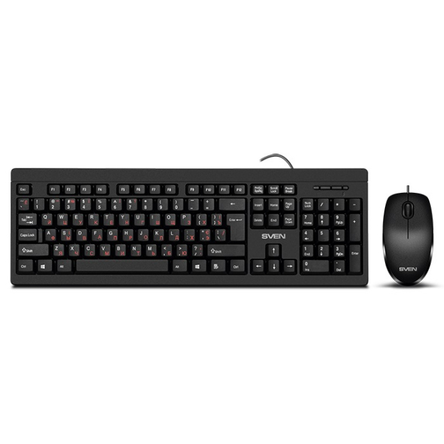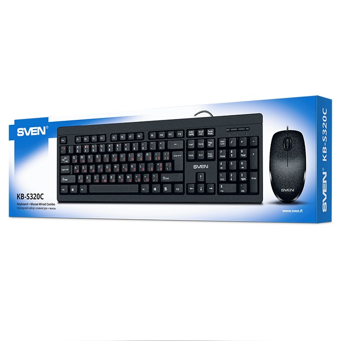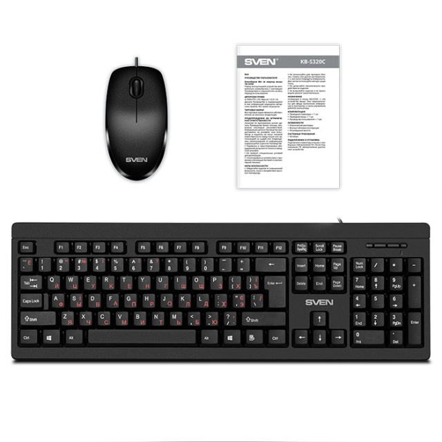 SVEN KB-S320C, Keyboard 104 keys + Mouse (Optical 800 dpi, 3+1 (scroll wheel)), Waterproof design, 1.5m, USB, Black, Rus/Ukr/Eng