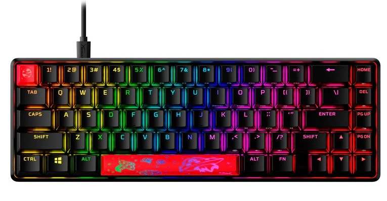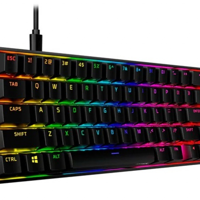 HYPERX Alloy Origins 65 RGB Mechanical Gaming Keyboard (RU), Black, Mechanical keys (HyperX Red key switch) Backlight (RGB), Functionally compact 65% form factor, Ultra-portable design, Full aircraft-grade aluminum body, USB