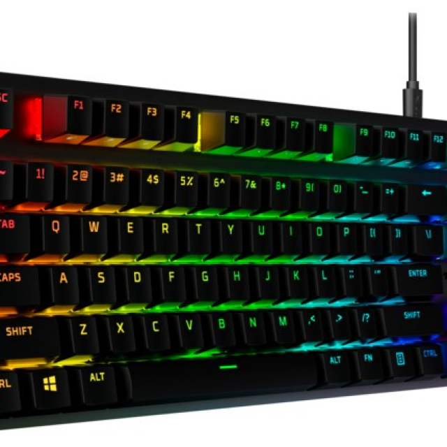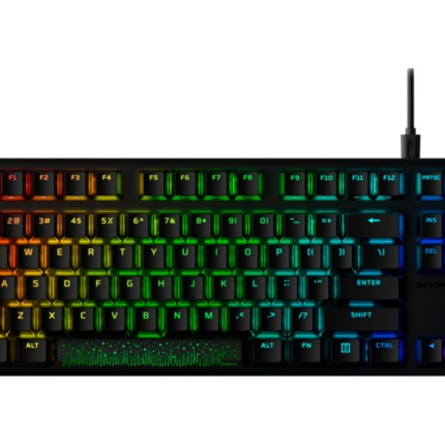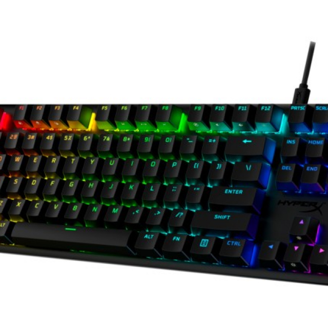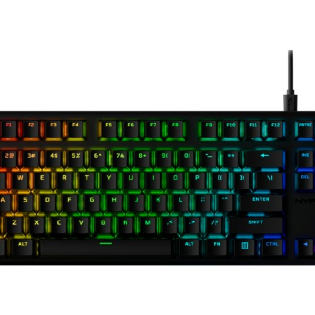HYPERX Alloy Origins Core PBT Mechanical Gaming Keyboard (RU), HyperX Red - Linear key switch, High-quality, Durable PBT keycaps, Backlight (RGB), 100% anti-ghosting, Ultra-portable design, Solid-steel frame, USB