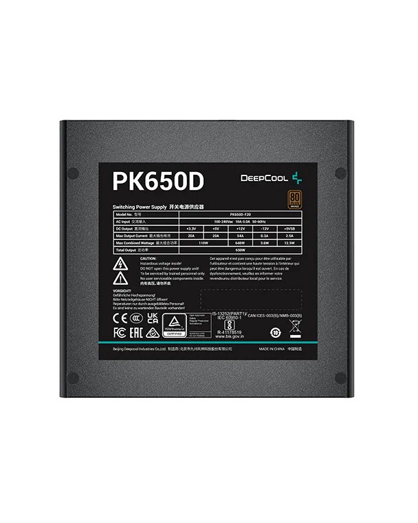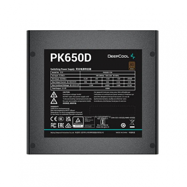 PSU GamerStorm ”PK650D”, 650W, ATX12V V2.4, 80 PLUS® Bronze, Active PFC, DC-DC Conversion, 120mm Hydro Bearing fan, Black Flat Cables, +12V (54A), 20+4 Pin, 2xCPU(4+4Pin), 7x SATA, 4xPCI-E(6+2pin), 4x Peripheral, ErP 2013, SCP,OPP,OTP,OVP,OCP,UVP, Black