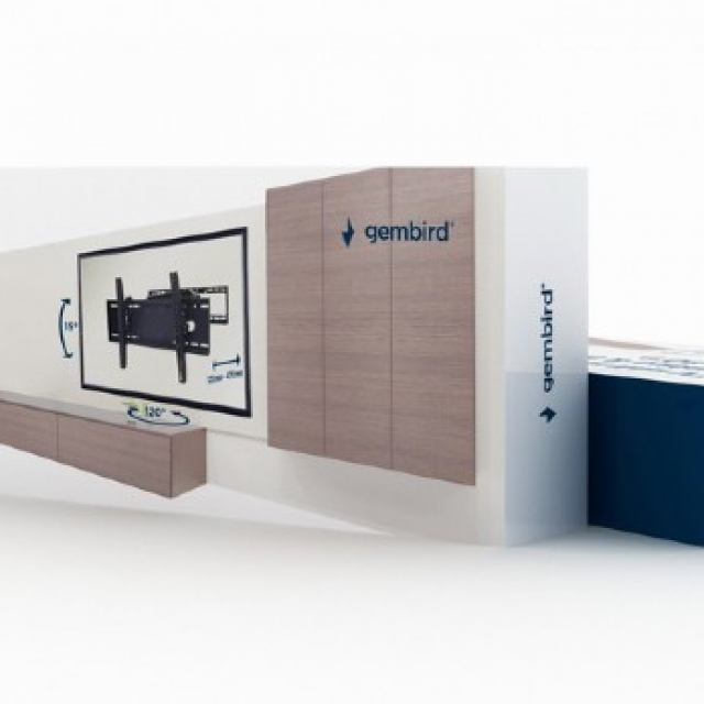 Full-motion TV-Wall Mount for 37 -80”- Gembird ”WM-80ST-02”, allows up to 120 degrees swivel and 20 degrees tilting, max. 60 kg, Distance to wall: 58 - 402 mm, max. VESA 600 x 400, Black