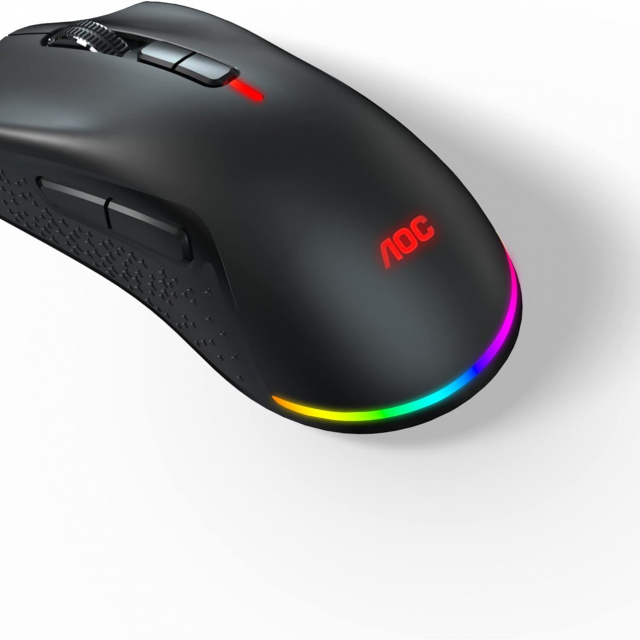 AOC GM530B Gaming Mouse, Black, 400–16000 DPI, Pixart PMW3389 sensor, RGB Logo, 7 x button mouse, Comfortable symmetric design, Kailh switches, Light ring provides dynamic RGB effects, USB, AOC G-Menu, 146g