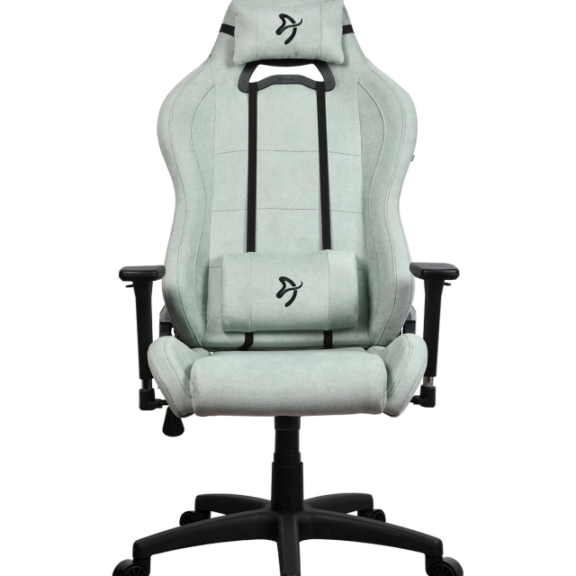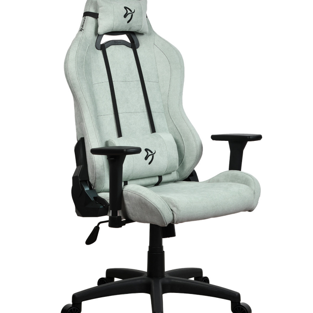 Gaming/Office Chair AROZZI Torretta Soft Fabric, Pearl Green, Soft Fabric, max weight up to 95-100kg / height 160-180cm, Recline 145°, 3D Armrests, Head and Lumber cushions, Metal Frame, Nylon wheelbase, Gas Lift 4class, Small nylon casters, W-26.5kg