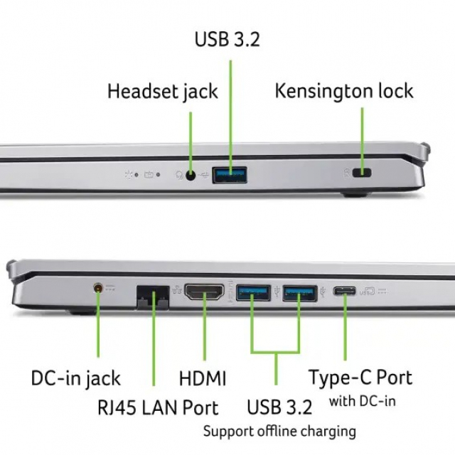 ACER Aspire A315-44P Pure Silver (NX.KSJEU.002) 15.6” IPS FHD (AMD Ryzen 7 5700U 8xCore 1.8-4.3GHz, 16GB (1x16 + free slot) DDR4 RAM, 512GB PCIe NVMe SSD, AMD Radeon Graphics, WiFi6-AX/BT 5.1, RJ-45, 50Wh 3cell, 720p HD webcam, EN/RU/UA, No OS, 1.78kg)