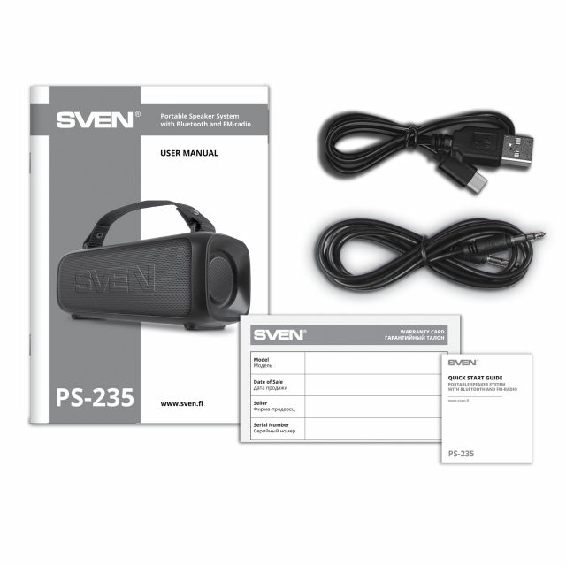 Колонка Портативная SVEN PS-235, Black / 12W / Bluetooth / FM / USB / 1500mA*h