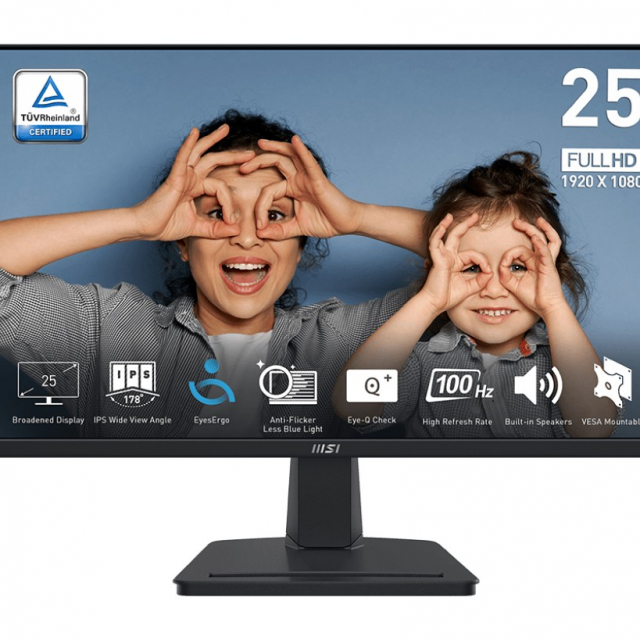 24.5” MSI IPS LED PRO MP251 Black (1ms, 1300:1, 300cd, 1920x1080, 178°/178°, VGA, HDMI, Adaptive FreeSync, Refresh Rate 100Hz, Audio Line-in/out, Speakers 2 x 2W, VESA)