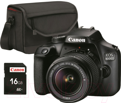 Зеркальная камера Canon EOS 4000D EF-S Kit 18-55mm III (3011C015AA) (с сумкой SB130 и картой памяти SD 16GB)