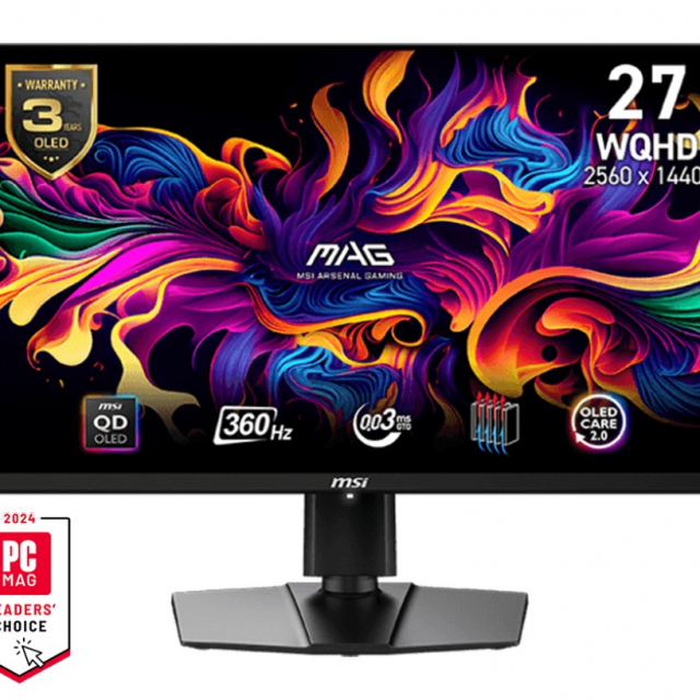 26.5” MSI OLED MAG 271QPX QD-OLED E2 Quantum Dot Black (0.03ms, 1.5mln, up to 1000cd, 2560x1440, 178°/178°, 2 x HDMI2.1, DisplayPort, USB-C (Video, Data, Power (15W)), up to 240Hz Refresh Rate, AMD FreeSync Premium Pro, DisplayHDR True Black 400, Audio Line-out, Height Adjustment, Pivot, VESA )