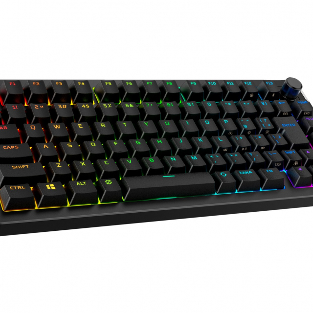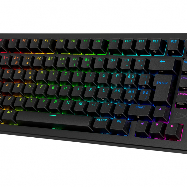 HYPERX Alloy Rise 75 Wireless RGB Mechanical Gaming Keyboard without Numlock (RU), Mechanical keys (HyperX Linear switches) Backlight (RGB), Tri-mode connectivity (Wired, BT, 2.4GHz), Ultra-customizable, Hot-swappable key switches, Ambient light sensor, Solid-steel frame, Up to 1500 hours of battery