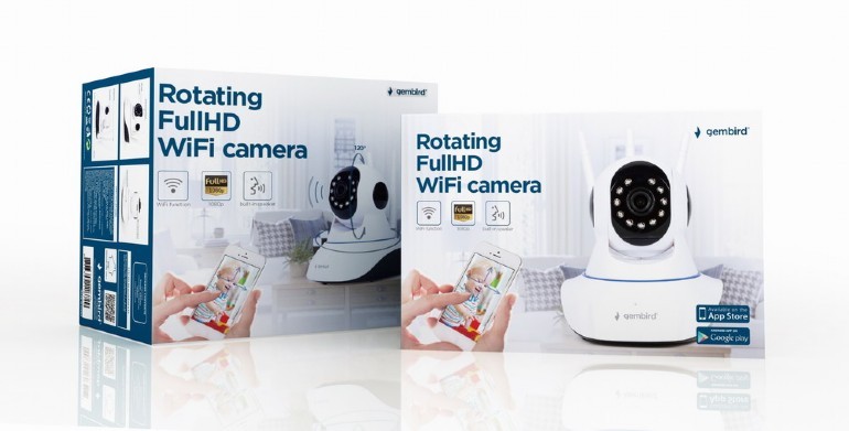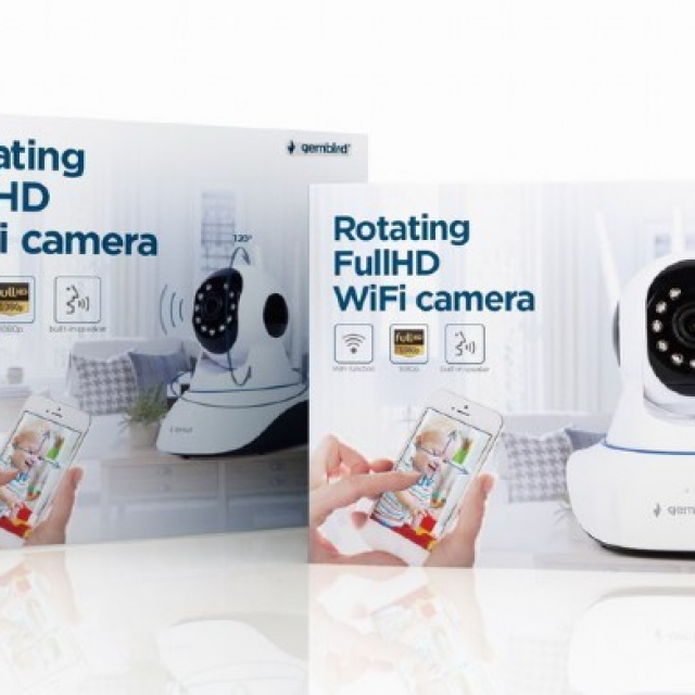 Gembird Smart Rotating WiFi camera TSL-CAM-WRHD-02, 1080p indoor WiFi IP-camera with built-in microphone, speaker, microSD slot, Rotates up to 355° horizontally and 120° vertically, Motion detection and alarm alerts, free Tuya SmartLife app, IR night vision, White