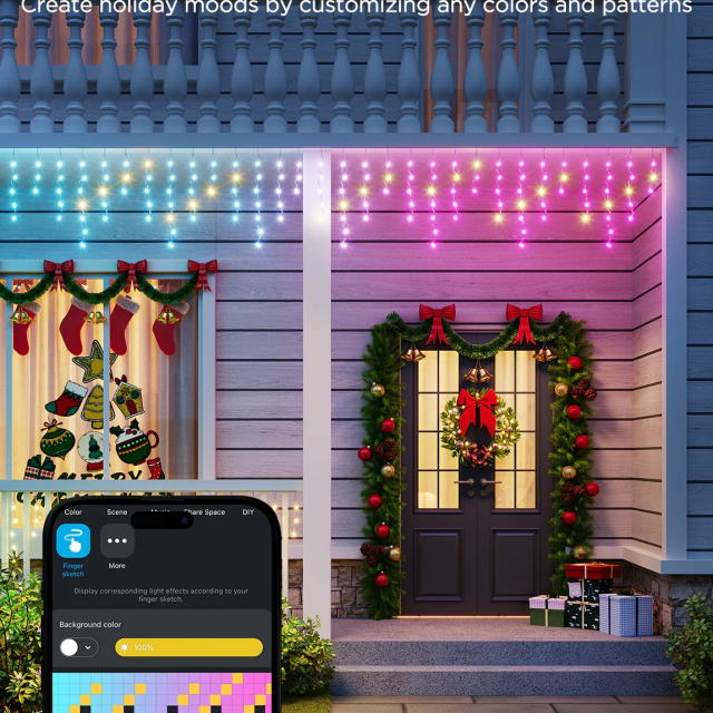 Сделай сам одним щелчком пальцев - Создайте индивидуальный дизайн гирлянды-сосульки и нарисуйте любой узор на каждой лампе с помощью функции «Набросок пальцем», которая вдохновит вас на творчество.