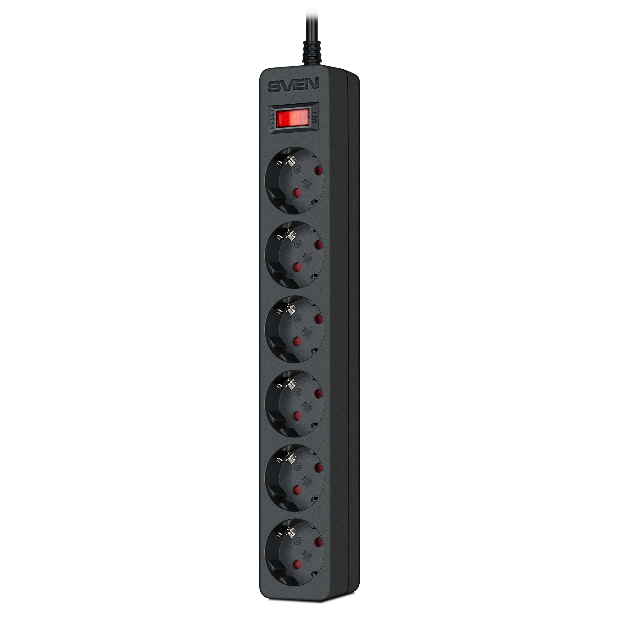 Surge Protector SVEN SF-06E, 6 Sockets, Children protection, NON-FLAMMABLE, 2300W, 1.8m, Black