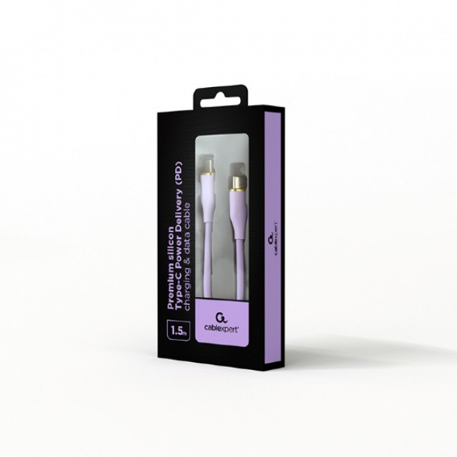 Cable Type-C to Type-C - 1.5 m - Premium silicon Cablexpert CC-USB2S-CMCM-1.5M-BK, 60 W Type-C Power Delivery (PD) charging & data cable, 1.5 m, Violet
