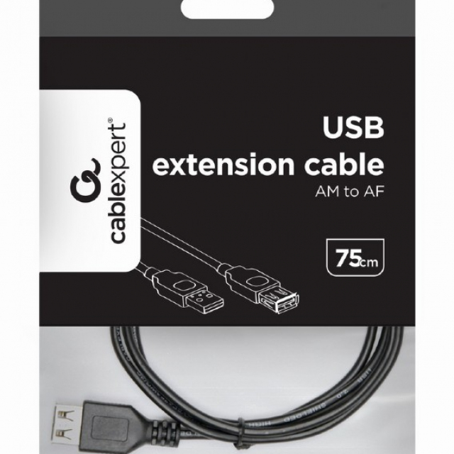 Cable USB2.0 - Cablexpert CC-USB2-AMAF-75CM/300-BK, extension cable, 0.75 m, black
