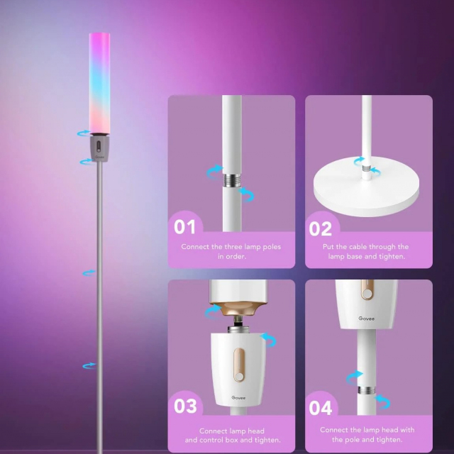 Торшер GOVEE RGBICW Cylinder Floor Lamp, Wi-Fi + BT, Multicolor + Extra White LEDs