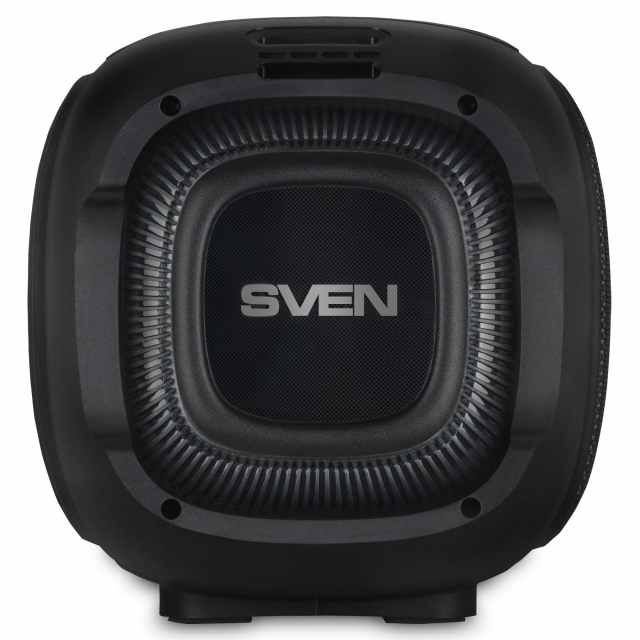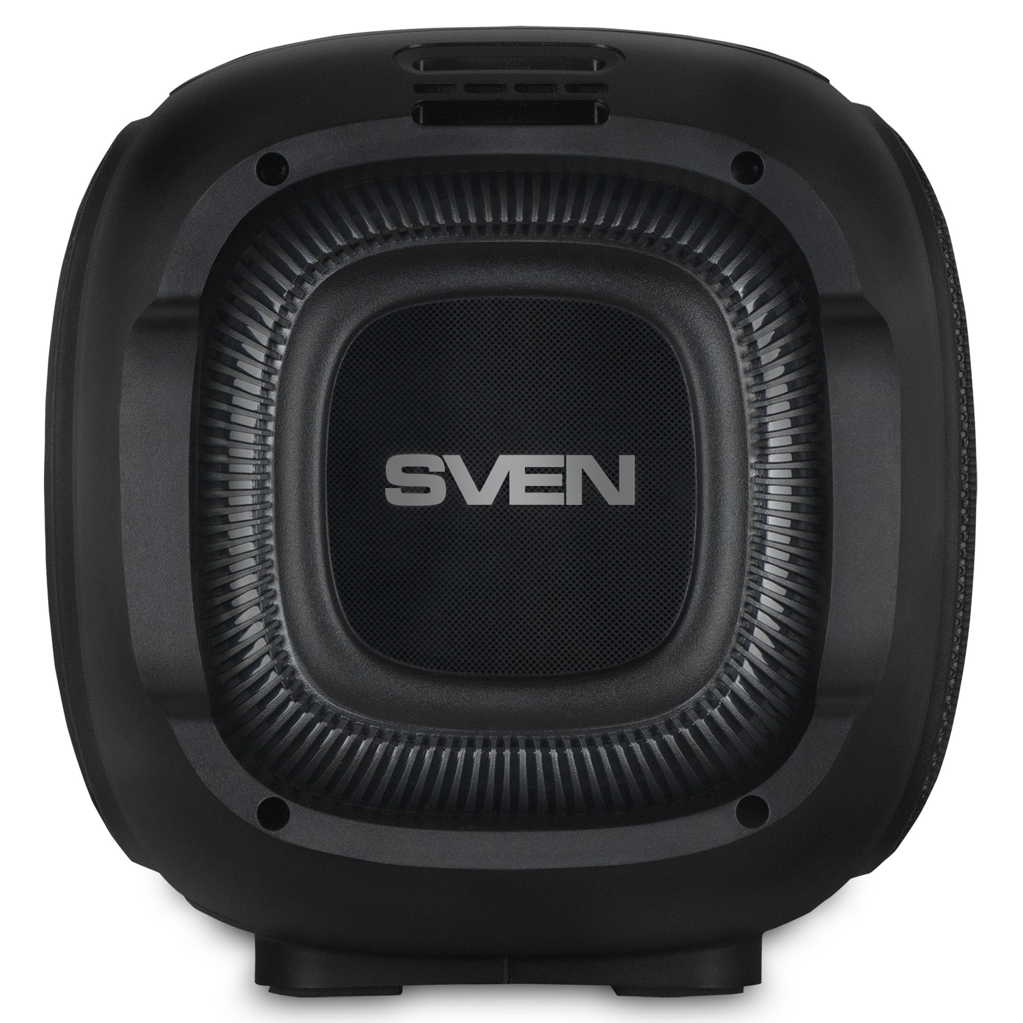 SVEN PS-860, 100W (2x50) Dynamic switchable RGB backlight, TWS, Bluetooth, FM, USB, microSD, Li-Ion battery: 7.4 V, 5400 mA·h (39.96 W·h), Two microphone inputs for karaoke, Remote control, NFC, Carrying handle, 5.7kg, Black