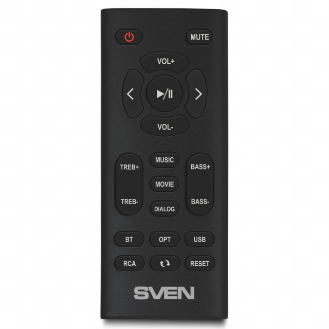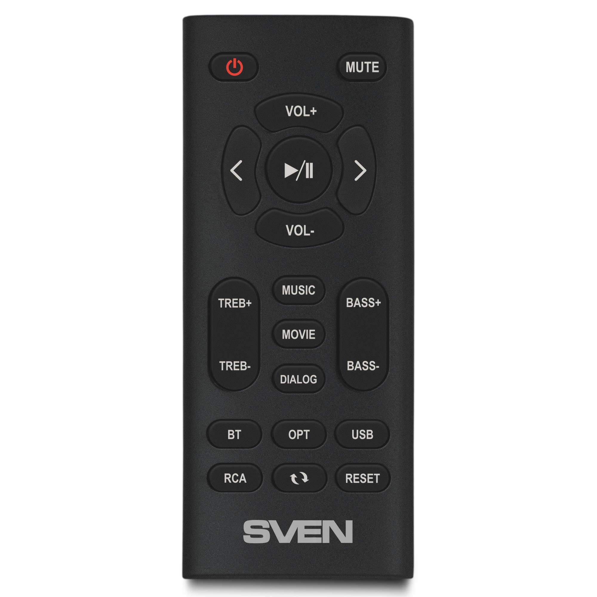 SVEN MC-5 Grey, 2.0 / 2x25W RMS, Bluetooth, RCA, microSD, USB flash, optical input, remote control, All-in-one control panel with touch buttons.