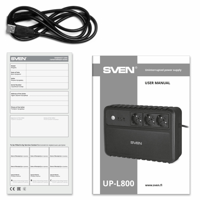 SVEN UP-L800, Line-interactive UPS with AVR, 800VA /400W, 3 x Schuko outlets, LED status indication, USB, Black