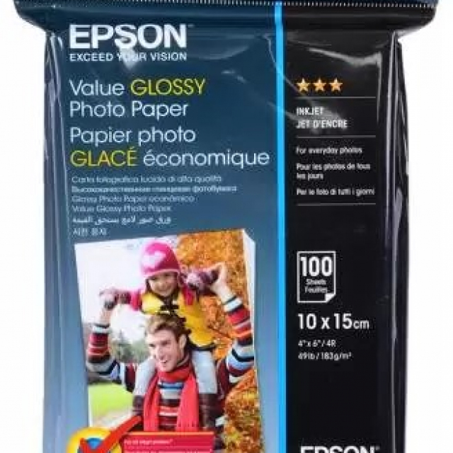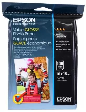 Epson Value Glossy Photo Paper, Glossy, 10x15 cm (102x152 mm), 183 g/m2, 100 pages, Thickness: 220 microns