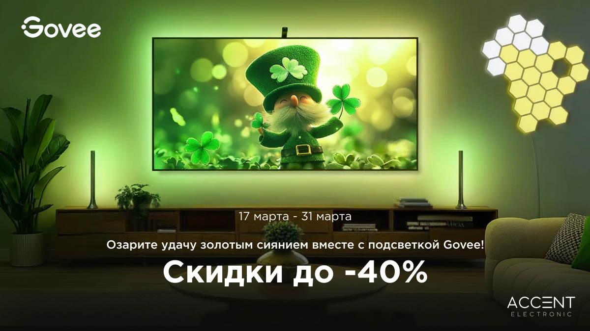 Приобретайте продукцию Govee СО СКИДКАМИ до -40% и наполните свой дом атмосферой уюта и света!