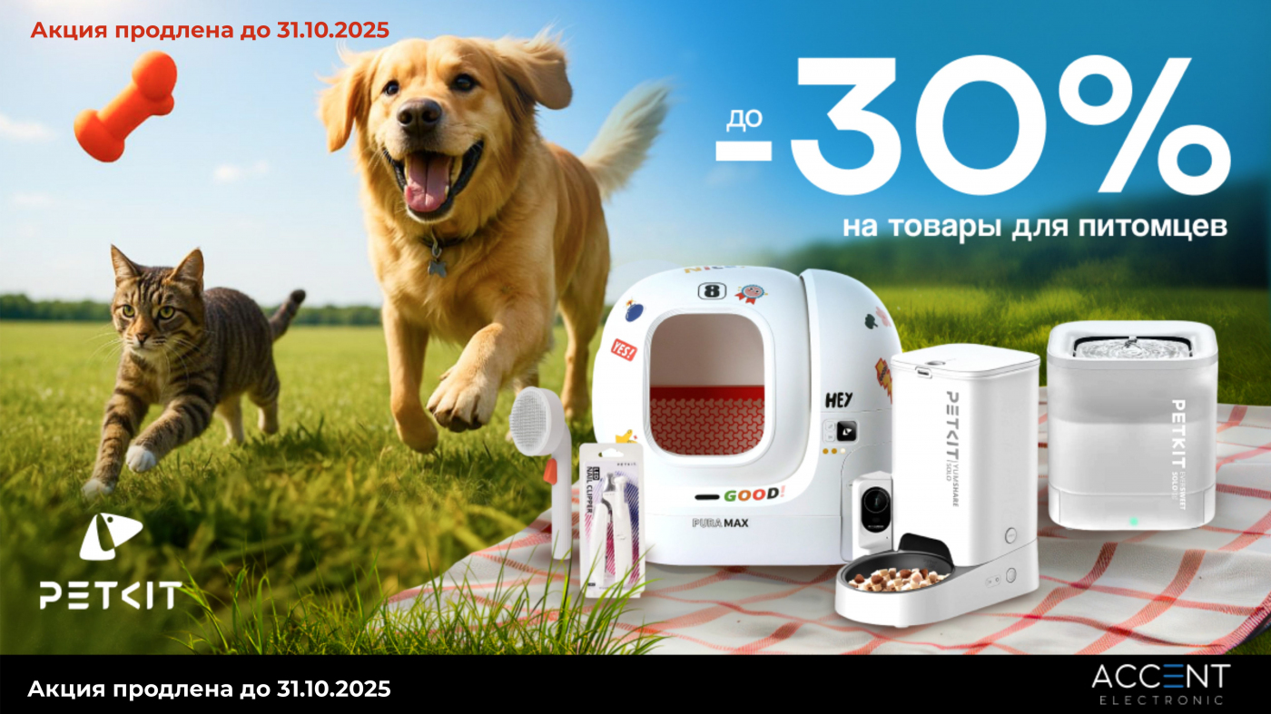 Акция Petkit продлена! Скидки до –30% действуют до 31.10.25